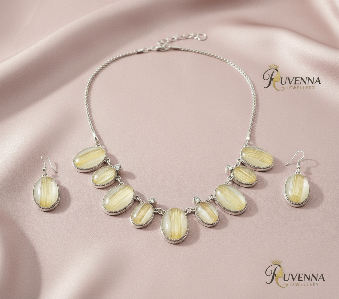 Elevate your looks with this stunning Fusion Necklace and Earring Set, inspired by the Korean jewellery trend....